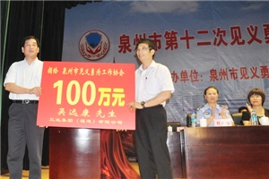 三遠(yuǎn)集團(tuán)董事長、總裁吳遠(yuǎn)康先生向泉州市見義勇為工作協(xié)會(huì)捐款100萬元人民幣 |