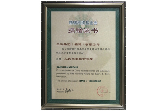三遠集團向北京精瑞住宅科技基金會捐贈人民幣10萬元,支持中國人居科學(xué)技術(shù)進步事業(yè)發(fā)展