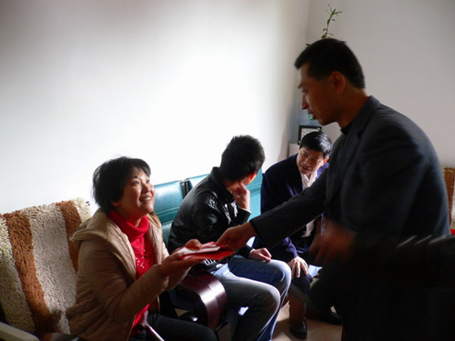 春節(jié)將至,為貫徹黨的十八屆三中全會精神,為繼續(xù)深入貫徹晉江市委、市政府“春風(fēng)計(jì)劃”精神,落實(shí)對特困家庭“四幫四扶”工作,2014年1月27日,我校代表隨同劉文儒市長、市政府唐春曉主任,池店鎮(zhèn)鎮(zhèn)書記、鎮(zhèn)長、及分管副鎮(zhèn)長前往池店鎮(zhèn)柴塔村村民卓秀香家中慰問,并由中遠(yuǎn)學(xué)校黨支部副書記吳偉鴻代表中遠(yuǎn)捐贈(zèng)慰問金。 劉文儒市長親切詢問了卓秀香女士的生活情況,表達(dá)了市鎮(zhèn)領(lǐng)導(dǎo)的節(jié)日祝福和晉江市委市政府對困難群眾的關(guān)心。 一年來,中遠(yuǎn)學(xué)校作為“四幫四扶”的市直單位不定期地用各種形式幫助卓秀香一家,作為牽頭的黨支部和校團(tuán)委,帶領(lǐng)著校志愿者用各種形式參加社會公益活動(dòng),用自己的一份力量不斷為社會帶去溫暖。