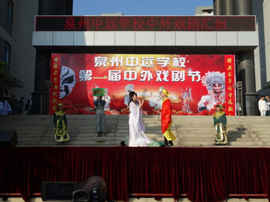 為了豐富學生的課余生活,創(chuàng)建書香校園和提高學生綜合素質(zhì),促進學生全面發(fā)展,培養(yǎng)學生健康的審美情趣與藝術(shù)修養(yǎng),12月18日下午,中遠學校第二屆中外戲劇節(jié)在學校前庭如火如荼地展開了。