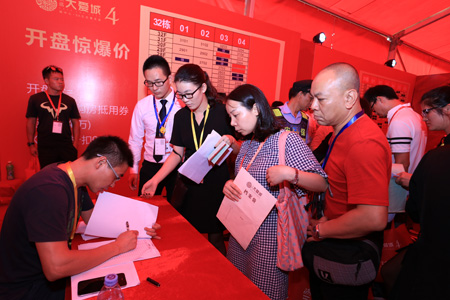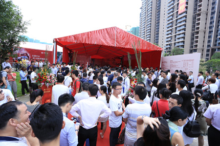 簽到現(xiàn)場客戶情緒高漲,雖遇大雨,但依然無法阻擋絡(luò)繹不絕的客戶,客戶等候區(qū)早已爆滿,連走道都被圍堵得水泄不通,人氣爆棚全城罕見。在激情昂揚(yáng)的開場舞之后,開盤儀式正式啟動(dòng)。隨著主持人宣布搖號(hào)正式開始,現(xiàn)場氣氛持續(xù)升溫,在場所有客戶都目不轉(zhuǎn)睛地盯著現(xiàn)場屏幕,生怕錯(cuò)過自己的簽到號(hào)碼,緊張激烈的搶房氛圍充斥著整個(gè)銷售現(xiàn)場。