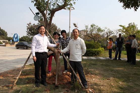 2012年3月17日下午,三遠(yuǎn)地產(chǎn)集團(tuán)總部及遠(yuǎn)建項(xiàng)目公司全體員工在總部舉辦了“三遠(yuǎn)地產(chǎn)綠色辦公周年植樹活動(dòng)”,用實(shí)際行動(dòng),踐行“綠色辦公,低碳生活”倡議。 三遠(yuǎn)地產(chǎn)集團(tuán)綠色辦公周年植樹活動(dòng)合影 活動(dòng)開始前,集團(tuán)董事、常務(wù)副總裁陳章勃先生進(jìn)行動(dòng)員演講 眾人齊心,我為祖國添綠色 本次植樹活動(dòng)是集團(tuán)為紀(jì)念“三遠(yuǎn)綠色辦公倡議”實(shí)踐一周年,而選擇在“3.12植樹節(jié)”之后舉辦的一次周年紀(jì)念活動(dòng)。植樹活動(dòng)開展以各管理中心為單位,樹木由中心員工親手栽種并負(fù)責(zé)后期養(yǎng)護(hù)。大家在挖土、施肥、澆水等勞動(dòng)過程中,體會(huì)到了綠色辦公實(shí)踐的任重道遠(yuǎn),紛紛表示將在以后的工作生活當(dāng)中,繼續(xù)支持三遠(yuǎn)綠色辦公事業(yè)向前發(fā)展。 集團(tuán)董事、常務(wù)副總裁陳章勃完成種植任務(wù) 營銷管理中心代表隊(duì)完成種植任務(wù) 工程管理中心代表隊(duì)完成種植任務(wù) 成本控制中心代表隊(duì)完成種植任務(wù) 據(jù)悉,自2011年4月22日開始,三遠(yuǎn)地產(chǎn)集團(tuán)規(guī)定每月22日為三遠(yuǎn)地產(chǎn)綠色辦公日,倡議集團(tuán)每位員工從辦公內(nèi)容做起,從自身做起,踐行低碳原則。回顧三遠(yuǎn)近一年來的“綠色辦公”實(shí)踐,廣大三遠(yuǎn)人通過節(jié)約辦公用電用水、二手紙回收利用、減少公車出行等一系列措施來支持三遠(yuǎn)綠色辦公事業(yè)的發(fā)展,取得了豐碩成果。據(jù)三遠(yuǎn)綠色辦公小組不完全統(tǒng)計(jì),近1年時(shí)間以來,廣大三遠(yuǎn)人僅用電量一個(gè)項(xiàng)目就累計(jì)節(jié)約8340度,相當(dāng)于減排二氧化碳8314.98千克,減排碳量2268.48千克,等于種植樹木439.45棵,成果喜人。 財(cái)務(wù)管理中心代表隊(duì)完成種植任務(wù) 行政管理中心代表隊(duì)完成種植任務(wù) 物業(yè)管理中心代表隊(duì)完成種植任務(wù) 審計(jì)內(nèi)控中心代表隊(duì)完成種植任務(wù) 遠(yuǎn)建項(xiàng)目公司代表隊(duì)完成種植任務(wù) 綠色辦公,低碳生活。在未來發(fā)展過程中,三遠(yuǎn)地產(chǎn)集團(tuán)將以更強(qiáng)的社會(huì)責(zé)任感及使命感,繼續(xù)推近綠色辦公事業(yè)發(fā)展,加大環(huán)境保護(hù)力度,履行社會(huì)公民責(zé)任,促進(jìn)人與自然的和諧發(fā)展。