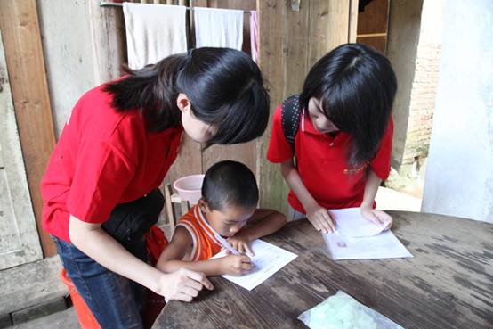 下午14:30分,在午飯并整頓之后,我們頭頂烈日,開始了本次助學(xué)公益行動的探訪之旅。11名志愿者被分成3組,由當(dāng)?shù)乇眻F鎮(zhèn)電力小學(xué)的3位老師引路,前往鎮(zhèn)里3個不同方向的鄉(xiāng)村探訪貧困學(xué)生家庭。