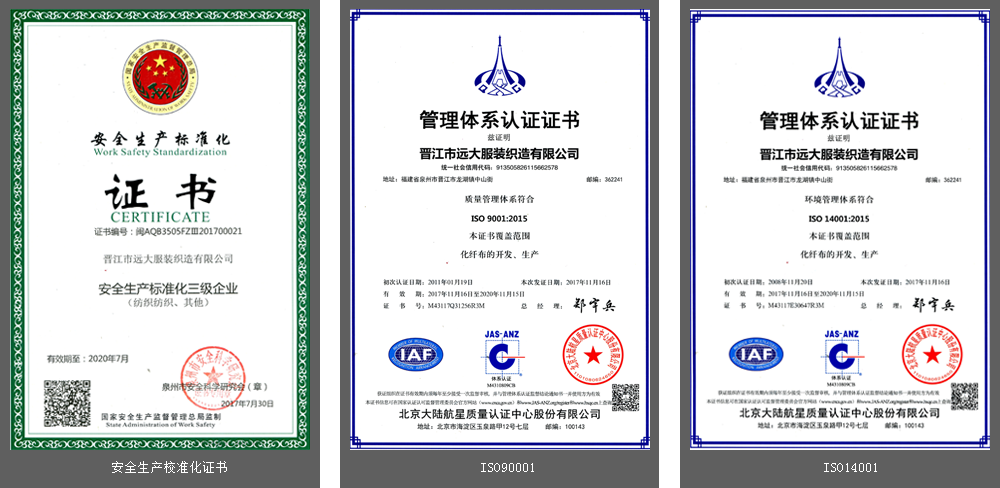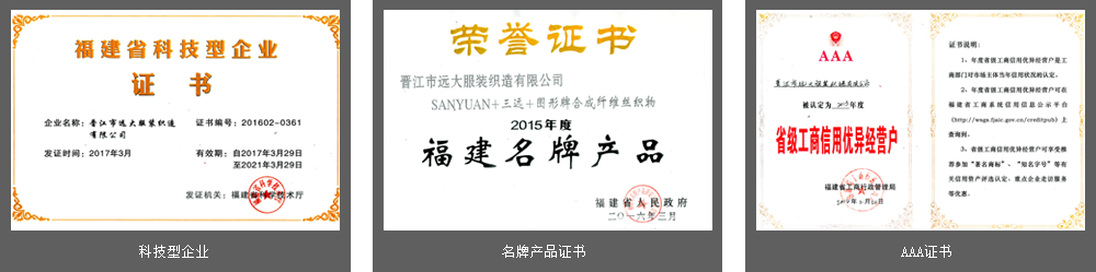 ? ? ? 晉江市遠大服裝織造有限公司創(chuàng)辦于1995年4月,公司地處于晉江市龍湖鎮(zhèn)中山街,位于306省道旁邊石金公路邊,距離石獅市服裝城不到6公里,地理位置優(yōu)越,交通便捷。廠區(qū)現(xiàn)占地面積10萬平方米,建有10幢通風(fēng)采光良好的標準廠房,總建筑面積5萬㎡,供電、供水設(shè)施齊全,排水、消防、安全設(shè)施規(guī)范。公司目前擁有日本、韓國、臺灣等國家與地區(qū)生產(chǎn)的先進紡織設(shè)備雙噴和多臂織機1200臺,專業(yè)生產(chǎn)滌綸、錦綸、滌錦、滌棉交織布、氨綸彈力布、海島仿鹿皮、仿真絲及高科技功能性面料等,年產(chǎn)高檔化纖面料6000萬碼,產(chǎn)品銷往全國各地。